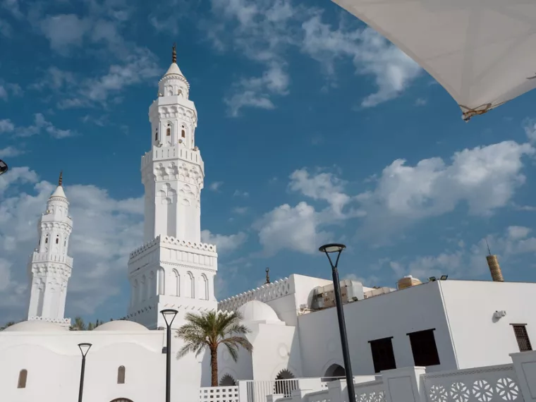 In Madinah krijg je de kans om de rust en spiritualiteit van de stad te ervaren. Je kunt bidden in de Masjid an-Nabawi, de rustplaats van de Profeet ﷺ, en genieten van de serene sfeer.